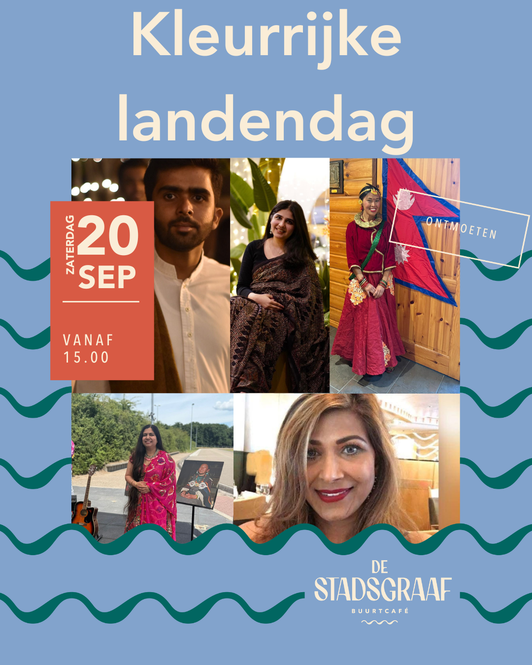 Zaterdag 20 september brengen Shital uit India, Sangita en Sumchog uit Nepal/ Tibet, Sue uit Malysia, Komal en Sarim Azim uit Pakistan hun verhalen, eten en dans naar De Stadsgraaf. Een internationale kleurrijke middag van 15:00 tot 18:00 uur. Waar je kennis maakt, kennis deelt, eten en ontmoet en elkaar kleurrijk begroet.